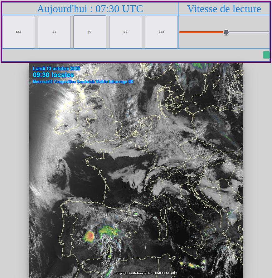 - Commencer par regarder à l'échelle Continentale (ou synoptique) les images satellites visibles, infra-rouge ainsi que les radars des pluies pour essayer de comprendre où se situent les grands centres d'actions (anticyclone et dorsales, dépressions et thalwegs avec éventuellement leurs perturbations associées) qui sont en train de piloter le temps présent, et comment ils évoluent. La carte de l'analyse finlandaise peut aider dans cette démarche.